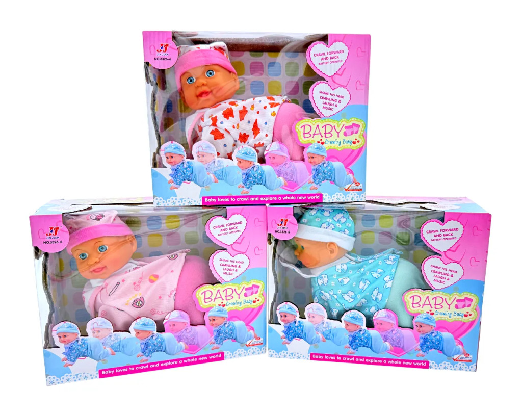 Mászó baba dobozban, elemes