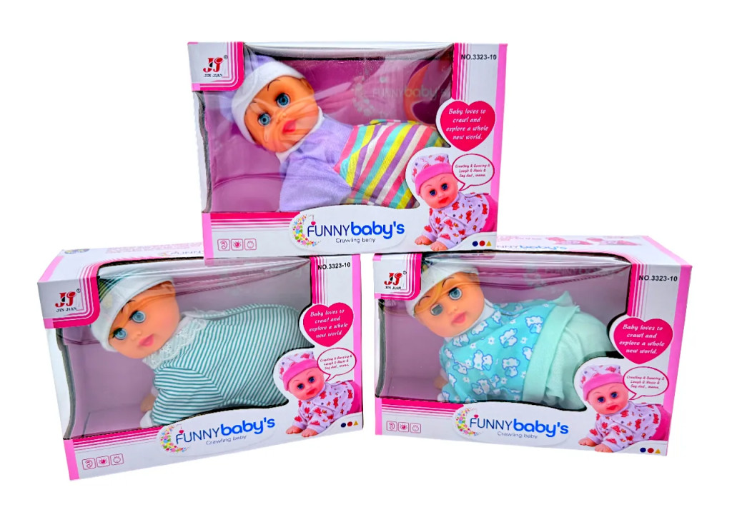 A játékos mozgású, vidám kis mászó baba már az első pillanatban elvarázsolja a gyerekeket, hiszen pont úgy ficánkol és kíváncsiskodik, mint egy igazi csöppség. A 18 x 10 cm-es figura könnyen kézbe simul, mégis elég részletes ahhoz, hogy a gyerekek gyorsan megszemélyesítsék és saját kis történeteket alkossanak köré. A baba előre és hátra mászik, miközben mókásan mozgatja a fejét, ami igazán életre kelti a játékot, és sok nevetést csal a kicsik arcára. A játékos hangok tovább fokozzák az élményt, és még jobban bevonják a gyerekeket a szerepjátékba.