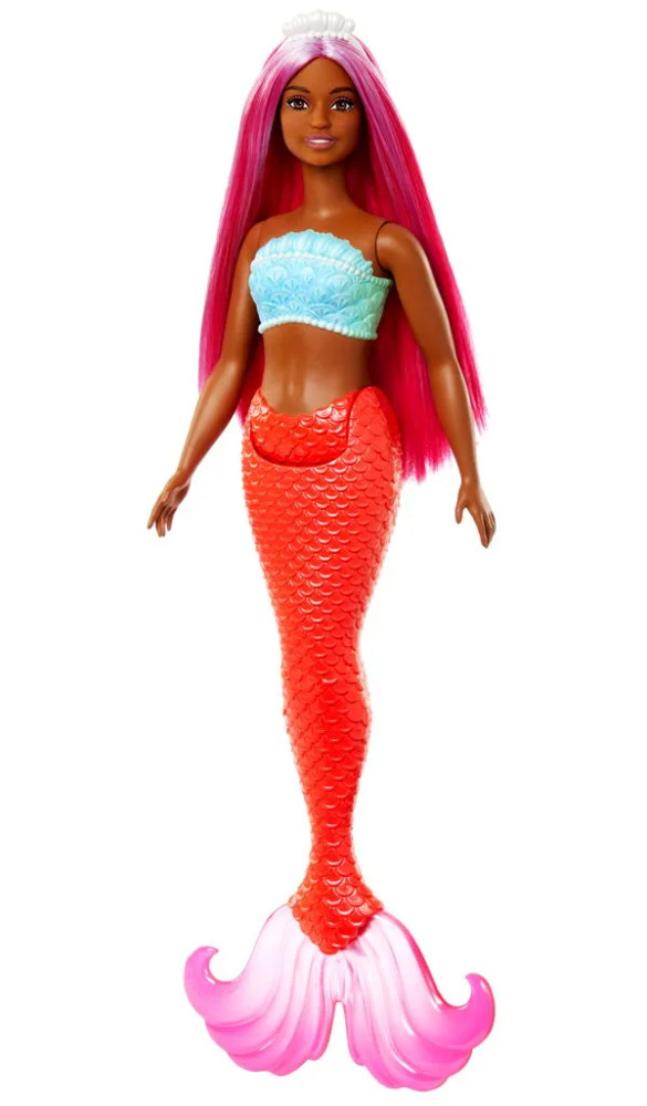 A Barbie Dreamtopia kreol bőrű sellő babája lenyűgöző megjelenésével garantáltan elvarázsolja a gyerekeket. Élénk rózsaszín haja és korall színű uszonya a tenger mélyéről ihletett varázslatos szépséget kölcsönöz neki. A uszony végén található rózsaszín részletek pedig tovább fokozzák a sellő baba egyediségét.