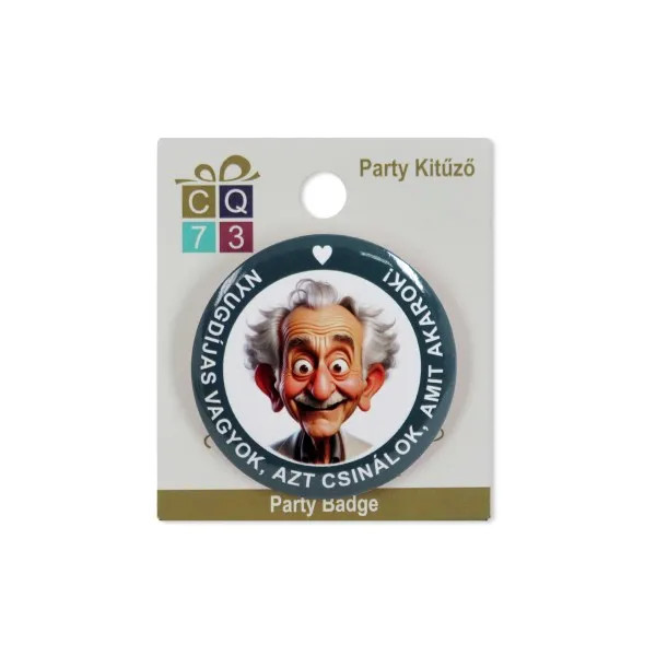 Party kitűző, Nyugdíjas vagyok feliratos, férfi
