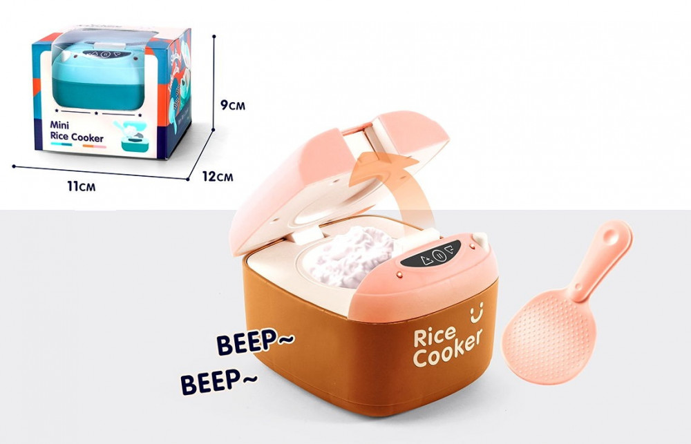Most bővítheted játékkonyhád ezzel a fantasztikus rizsfőzővel. Az élénk színekben pompázó háztartási gépnek mind a dizájnja mind a működése pont olyan mint az igazinak, így garantált a hosszas valósághű játék mely nem csak szórakoztató hanem tanulságos is a gyerekeknek. A rizsfőző stimuláló játékot biztosít az érzékeknek a működéssel párosuló hangoknak és fényeknek köszönhetően melyek tovább fokozzák a mókát.
