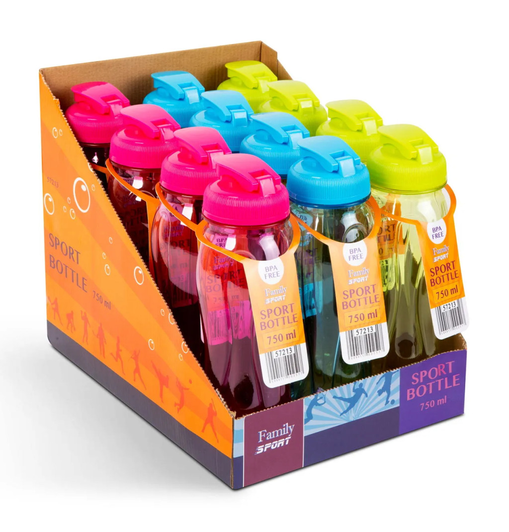 Sportkulacs, műanyag, 750 ml, 3 színben, 24050