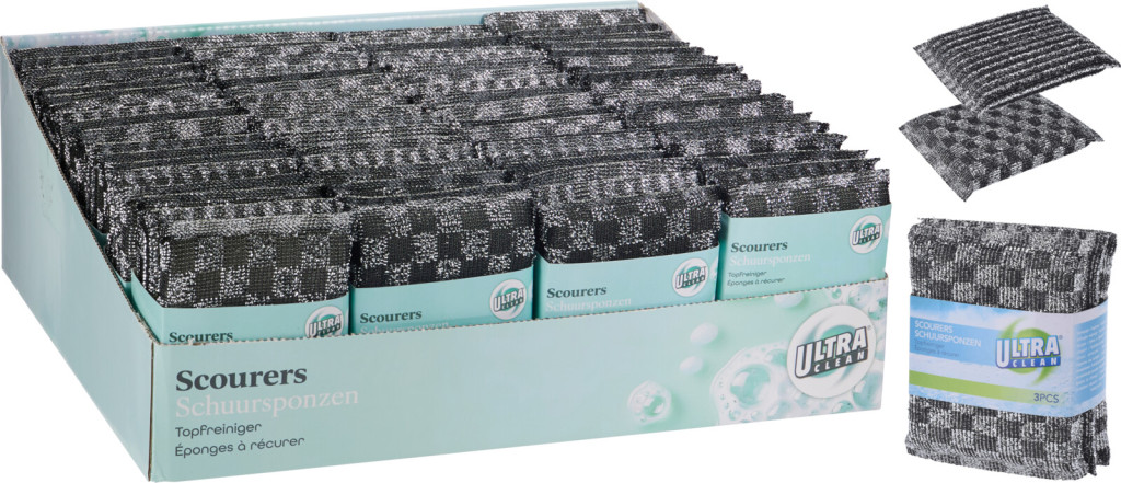 A csomag három darab súrolószivacsot tartalmaz, amelyek hatékonyan segítenek a különféle szennyeződések eltávolításában. A szivacsok mérete 9 x 11 cm, így kényelmesen kézben tarthatók, és elegendő felületet biztosítanak a hatékony tisztításhoz. A strapabíró, dörzsölő felület segít fellazítani és eltávolítani a makacs lerakódásokat, miközben praktikus eszköz marad a mindennapi takarítás során.