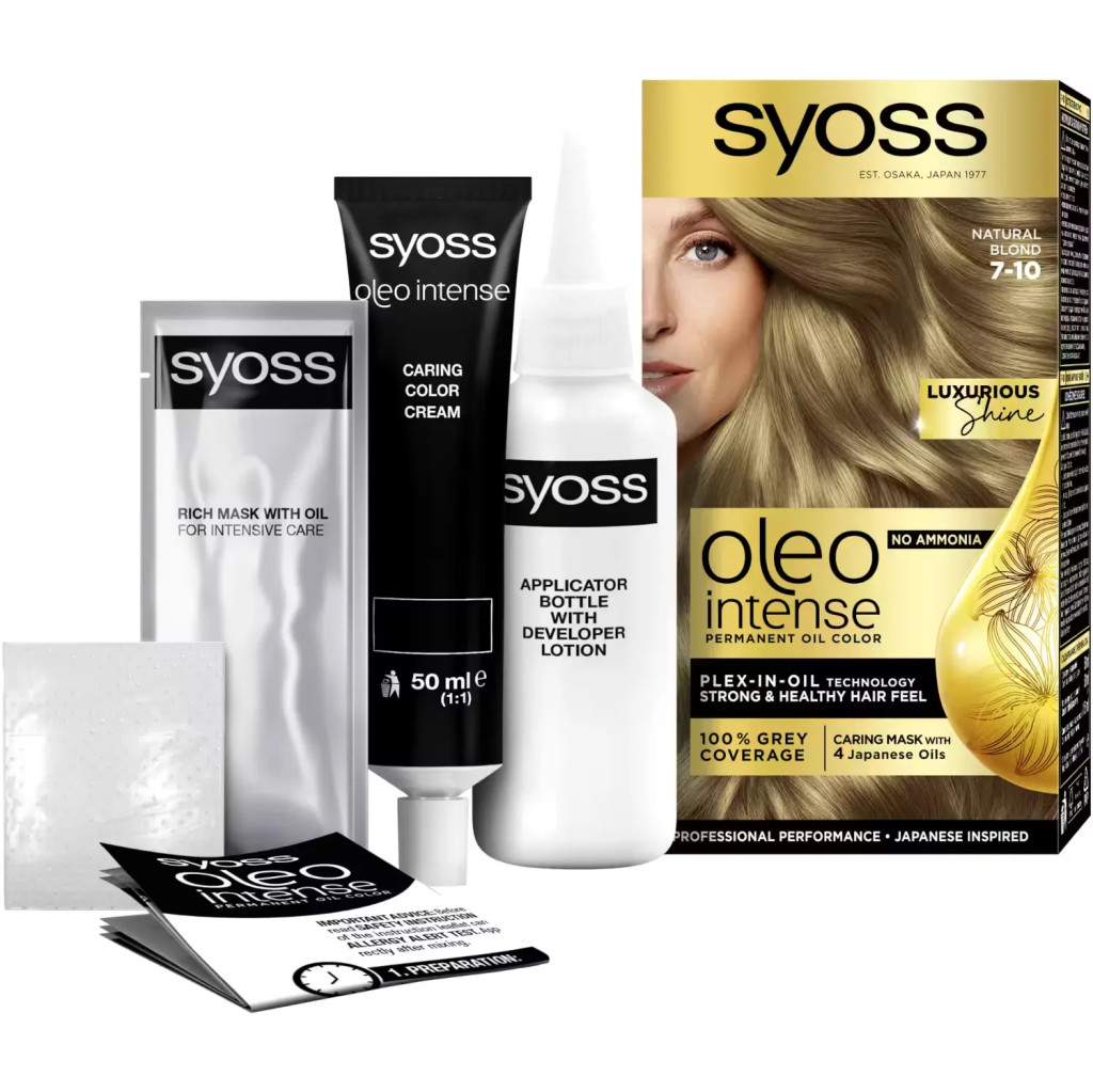 Természetes, ragyogó szőke hajszínre vágysz, amely friss és üde megjelenést kölcsönöz minden nap? A Syoss Color Oleo intenzív olaj hajfesték 7-10 természetes szőke árnyalatban tökéletes választás, ha egy lágy, harmonikus tónusú hajszínt szeretnél, amely kiemeli a hajad természetes szépségét.