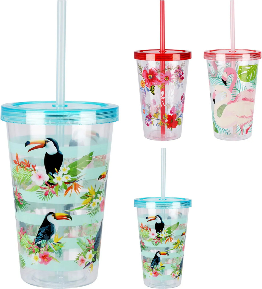 Ha keresel egy stílusos, praktikus és vidám megoldást a nyári hőség legyőzésére, akkor ez a 600 ml-es műanyag szívószálas pohár telitalálat lesz! Élénk trópusi mintái – mint például tukánok, flamingók vagy virágos dizájn – egy csapásra nyári hangulatot varázsolnak, akár otthon kortyolgatod a limonádét, akár a strandon lazítasz egy frissítő jeges teával.