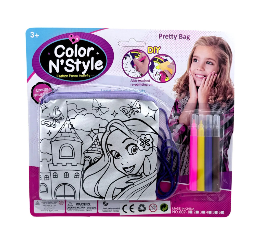 Ez a Color N’Style táska színezős játékszett tökéletes választás minden kreatív kislány számára, aki szeret alkotni és egyedi dolgokat készíteni! A szettben található kistáska különleges, fekete-fehér mintákkal díszített, amelyet a mellékelt színes filctollakkal saját ízlés szerint lehet kiszínezni. Így minden gyermek megalkothatja a saját stílusát és egyedi táskáját, amelyet büszkén viselhet bárhová.