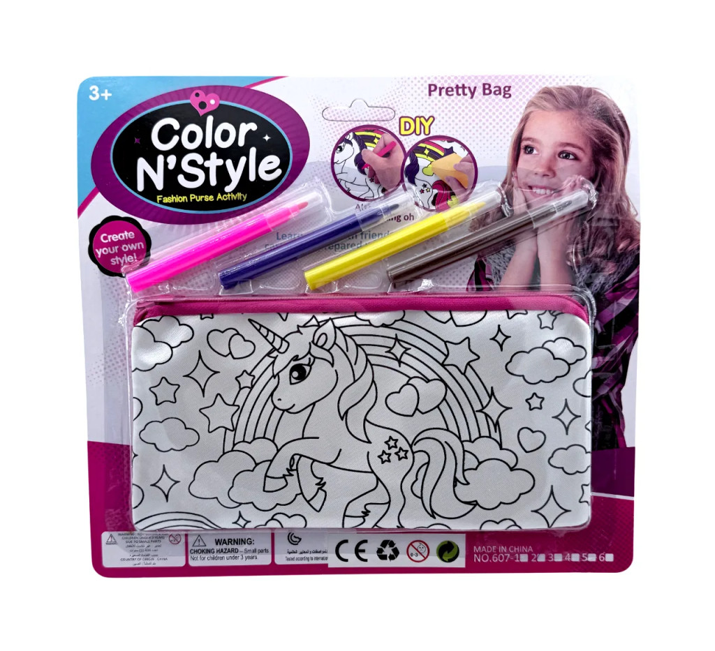 A Color N’Style táska színezős játékszett egy igazi álom minden kis alkotónak, aki szeretne saját stílust teremteni! A készletben található táska cuki unikornisos mintával díszített, amit a mellékelt színes filctollakkal bárki kedve szerint kifesthet. A gyerekek így nemcsak egy egyedi kiegészítőt készíthetnek maguknak, hanem közben megélhetik a kreativitás és az önkifejezés örömét is.