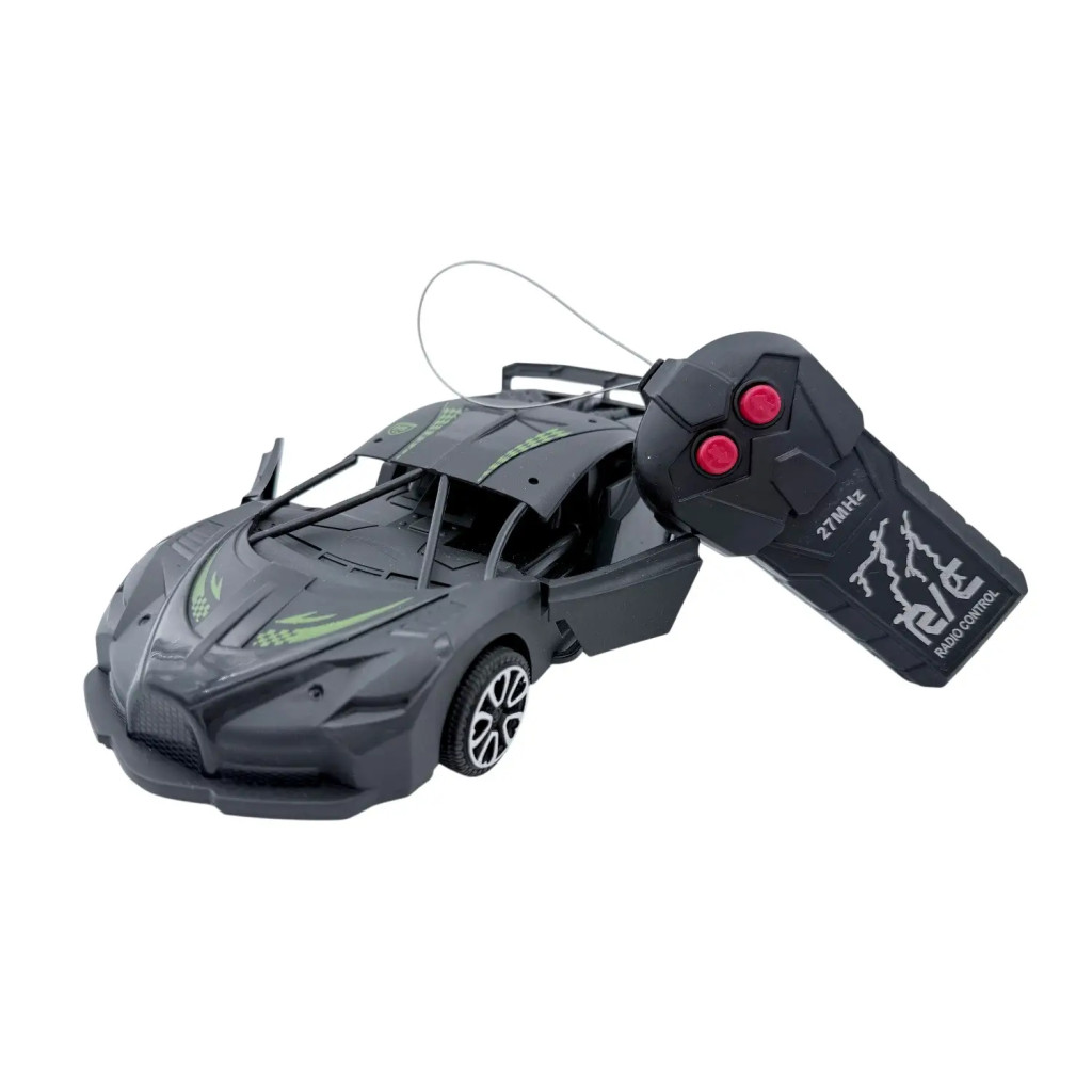 A kocsi kb. 24,5 cm hosszú, így ideális méret a szobai versenyekhez, ugyanakkor elég látványos ahhoz, hogy a polcon is jól mutasson. A távirányító 27 MHz-es frekvencián működik, és 3 darab AA elemmel üzemel. A modell többféle színben elérhető, fekete alapszínnel és zöld vagy narancssárga mintákkal, amelyek még sportosabb külsőt kölcsönöznek neki.