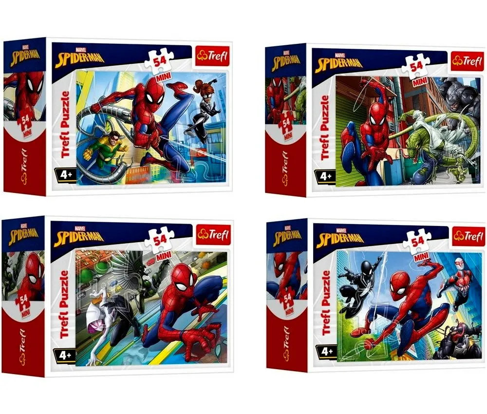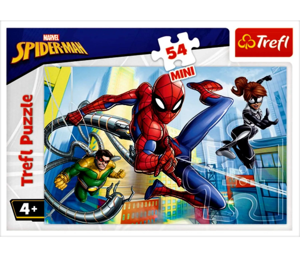 Pókember az egyik legnépszerűbb képregényhős, akinek a kalandjait egy szuper puzzle segítségével idézhetik fel a gyerekek. Az ötvennégy darabos puzzle négy különféle képpel érhető el, így mindenki kiválaszthatja a neki legjobban tetszőt, így Pókember akár a segítőivel, éppen az ellenfeleivel is szerepelhet a képen. A Trefl puzzle darabok tökéletesen illeszkednek és a kompromisszummentes, professzionális nyomdai eljárásoknak köszönhetően az elkészült kép lélegzetelállítóan éles és színpompás.