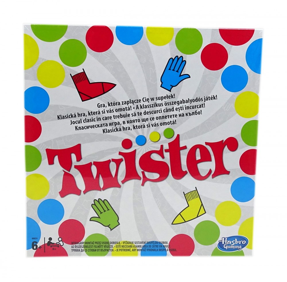 Ki ne ismerné az ügyességi játékok egyik legizgalmasabb társasjátékát, a méltán népszerű Twistert. Az egész család és baráti társaságok szórakoztatására alkalmas játékot szinte nem is lehet megunni! Pörgess a pörgetővel, és figyeld a játék alakulását!