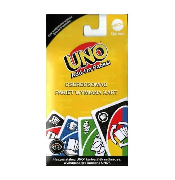 Az UNO kiegészítő kártyacsomagokkal garantált a nevetés, az izgalom és a váratlan fordulatok sora, amelyek újra és újra összehozzák a játékosokat egy vidám közös élményre.