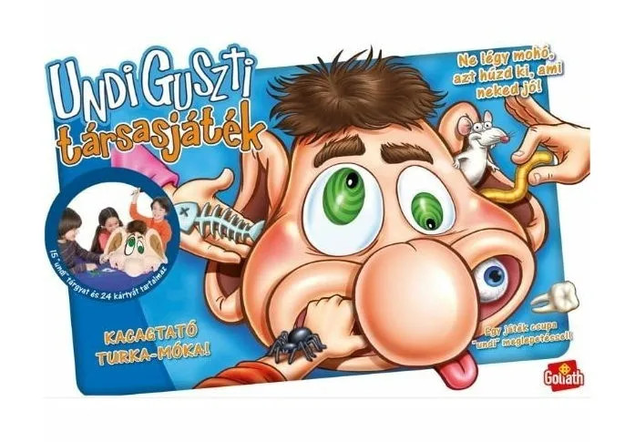 Vajon mi járhat Undi Guszti fejében? Most Te is megtudhatod, hiszen ebben az izgalmas társasjátékban szó szerint belemászhatsz a gondolataiba! A játékosoknak a kihúzott kártyán szereplő tárgyat kell megtalálniuk Undi Guszti fejében, ami izgalmas kihívás lesz ha egyszerre többen is kutatómunkában vagytok. Hagyatkozz a tapintásra és szerezd meg a tárgyakat a többiek előtt!