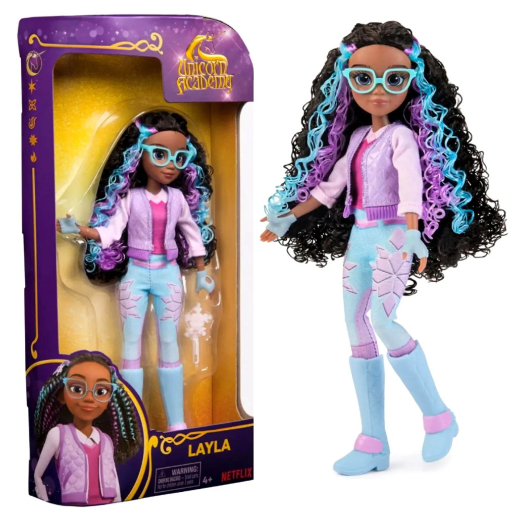 Layla karaktere tele van energiával és kreativitással, amelyet színes, kék és lila árnyalatokban pompázó haja, valamint trendi öltözéke is tükröz. A részletgazdag ruházat, a levehető kiegészítők és a csillogó dizájn mind hozzájárulnak ahhoz, hogy a gyerekek újra és újra átélhessék kedvenc jeleneteiket az Unikornis Akadémiából vagy saját varázslatos kalandokat találhassanak ki.