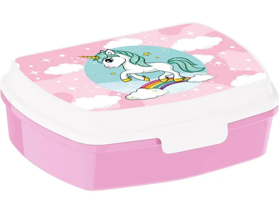 Az unikornisos műanyag szendvicsdoboz minden napot egy kicsit varázslatosabbá tesz. Letisztult formája és a kedves, szivárványon táncoló unikornis mintája azonnal meghódítja a gyerekek szívét, így a tízórai vagy az uzsonna már nem csupán egy falat étel lesz, hanem egy vidám élmény is. A 17 x 6 cm-es méret pont ideális szendvicsekhez, apró nassolnivalókhoz, gyümölcshöz, és könnyedén elfér az iskolatáskában.