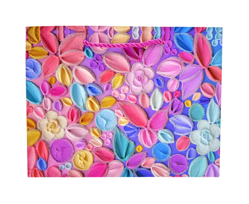 Ez a 17 x 23 x 10 cm méretű virágos papírtasak igazi kis ékszere lehet bármilyen ajándékozásnak, hiszen már az első pillanatban magára vonja a figyelmet a gazdag színvilágával és a részletgazdag, romantikus virágmintáival, amelyek finom csillogással és elegáns hangulattal teszik különlegessé az összhatást. Tökéletes választás születésnapra, névnapra, anyák napjára vagy akár egy spontán meglepetéshez is, amikor fontos, hogy az ajándék csomagolása legalább akkora élményt nyújtson, mint maga a meglepetés.