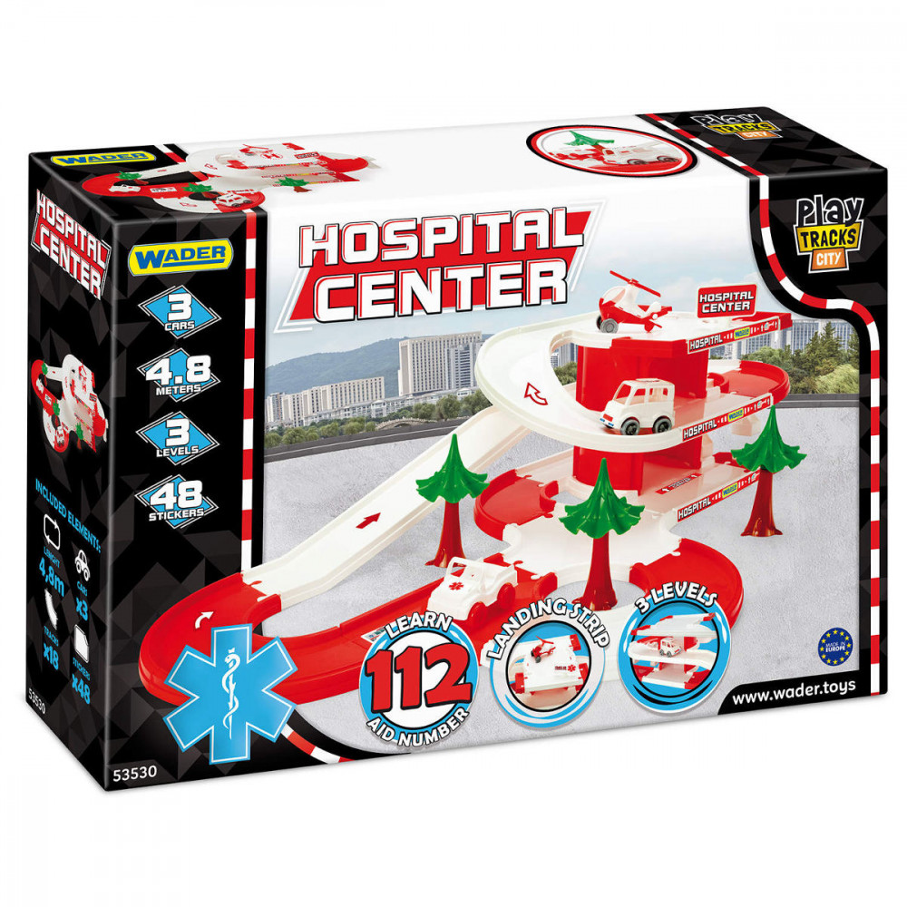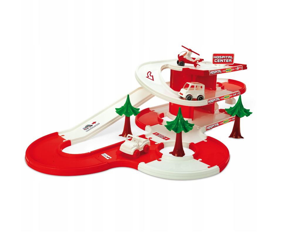 Ez a szuper kórház és parkoló a legkisebb gyerekeknek is hatalmas játékélményt nyújt, köszönhetően a nagy méretű elemeknek, amelyeket akár ők maguk is képesek összepattintani. A készletben egy több szintes parkoló és kórház található, amelyhez utakat lehet csatlakoztatni, melyek összes hossza majdnem eléri az öt métert. Természetesen a parkoló mellé különféle járművek is járnak, így két kisautóval és egy helikopterrel meg is indulhat a játék. A játékhoz negyvennyolc matrica is jár, amivel még színesebbé és izgalmasabbá lehet varázsolni az épületet.