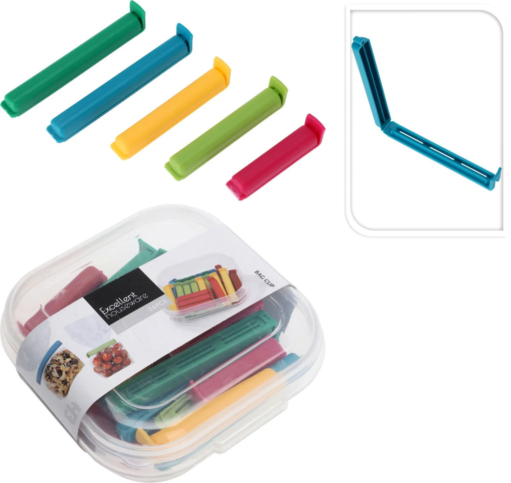 Zacskózáró műanyag csipeszek, 24 darabos csomag dobozban, 19446