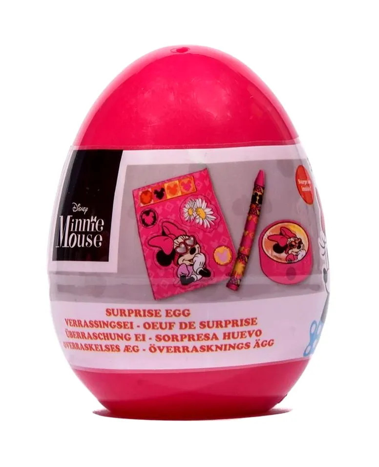 Minnie egér kicsi tojás apró meglepetés ajándékokkal! A tojás alakú tartóban matricákat, hegyezőt, nyakláncot, ceruzát, nyomdát találsz, természetesen mind a kedvenc Mickey és Minnie karaktereiddel díszítve. Hogy melyik készlet érkezik hozzád a kicsi tojásban, az persze meglepetés!