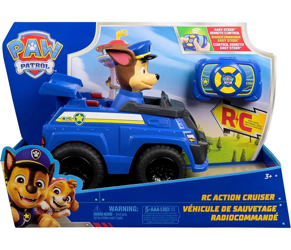 A körülbelül 20 x 18 cm méretű jármű részletgazdag kialakításával azonnal felismerhető a Mancs őrjárat világából. Chase a vezetőülésben ülve készen áll arra, hogy a gyerekek irányításával elinduljon a mentőakciókra. A masszív kialakítás és a nagyméretű kerekek gondoskodnak arról, hogy a jármű könnyedén guruljon a padlón vagy a szőnyegen is. A mellékelt 4 csatornás távirányítóval a gyerekek egyszerűen irányíthatják az autót.