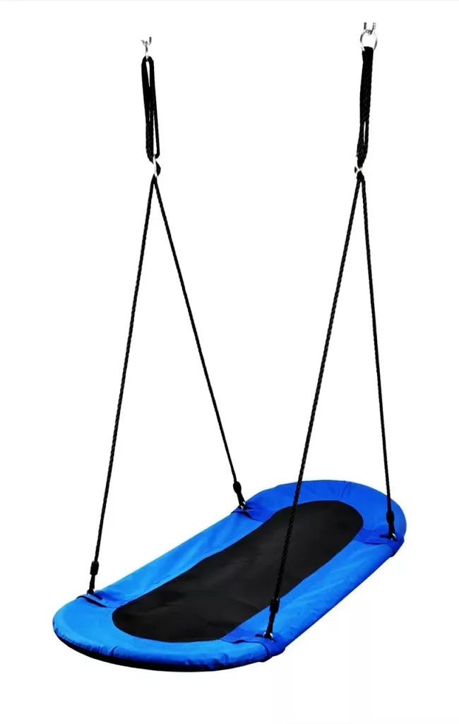Az ovális kialakítás stabil és biztonságos hintázást tesz lehetővé, miközben a nagy fekvőfelület nemcsak üléshez, hanem akár pihenéshez is ideális. A strapabíró anyagok és az erős kötelek gondoskodnak arról, hogy a hinta hosszú távon is megbízható társ legyen a szabadtéri játékok során. Egyszerűen felszerelhető fára vagy játszóállványra, így gyorsan készen áll a használatra. A modern dizájn és a vagány színek bármely kert vagy udvar látványos kiegészítőjévé teszik.