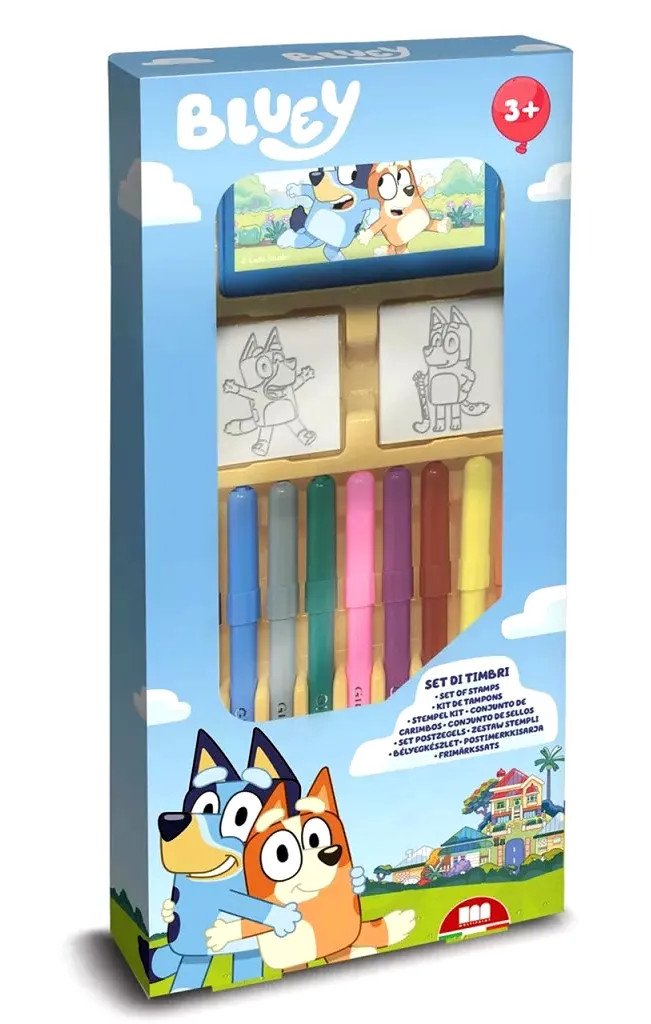 Bluey, bélyegző nyomda játékszett filccel, 9 darabos