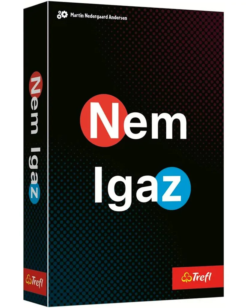 A Trefl Nem Igaz társasjáték egy pörgős és szórakoztató partijáték, amely garantáltan feldobja a családi vagy baráti estéket. Ha szeretitek a blöffölést és a logikai kihívásokat, ez a játék nektek való! A játék során felváltva próbáljátok megtéveszteni egymást, miközben kérdésekre válaszoltok a kártyák alapján, de nem minden válasz igaz… Figyelned kell a részletekre, emlékezni a korábbi válaszokra, és kitalálni, ki mond igazat.