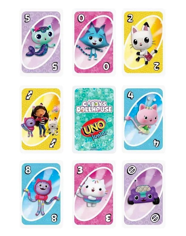 Az UNO Junior Gabi babaháza kártyacsomag egy olyan vidám és játékos élményt hoz el a gyerekek mindennapjaiba, amely egyszerre könnyen tanulható és mégis izgalmas, így már az első parti után garantáltan mindenki újra szeretné majd játszani, ráadásul a kedves és színes Gabi babaháza szereplők még barátságosabbá és szerethetőbbé teszik az egész élményt. A kártyákon megjelenő cicák, karakterek és vidám háttérminták nemcsak mosolyt csalnak a gyerekek arcára, hanem segítenek abban is, hogy könnyebben megkülönböztessék a színeket, számokat és akciókártyákat, így a játék tökéletes választás már egészen kicsiknek is, hiszen 3 éves kortól ajánlott és igazán jól fejleszti a figyelmet, a gyors reakciókat és a stratégiai gondolkodást.