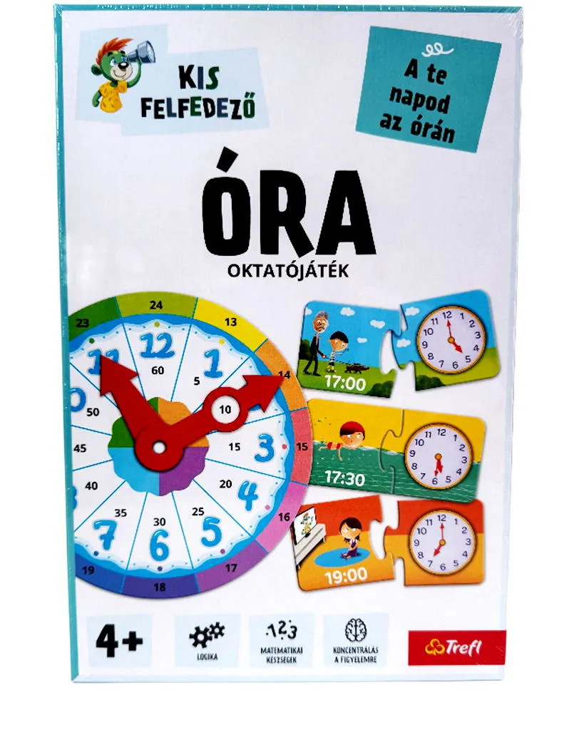 Tanuld meg az idő múlását játszva! A Trefl „Kis felfedező: Óra” oktatójátéka segít a gyerekeknek megérteni az órák és percek világát, miközben szórakoztató formában fejleszti a logikát, a matematikai készségeket és a figyelmet. Az új kiadás még színesebb, részletgazdagabb grafikával érkezik, hogy még vonzóbbá tegye a tanulást a kis felfedezők számára.