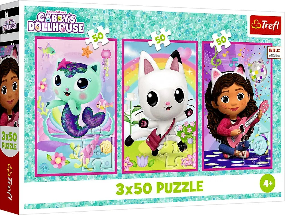 Trefl, 3 x 50 darabos puzzle szett, Gabi babaháza, Gabi cicákkal