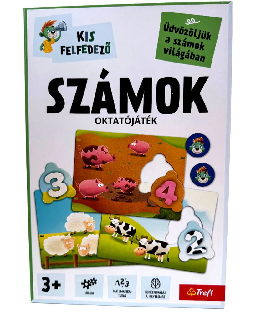 Fedezd fel a számok világát játékos formában! A Kis felfedező: Számok oktatójáték a Trefl-től remek segédeszköz minden kíváncsi ovisnak, aki éppen most ismerkedik a számokkal. A színes, vidám grafikákkal ellátott párosító játék segít a számfogalom kialakításában, miközben fejlődik a logika, a figyelem és a megfigyelőképesség is.