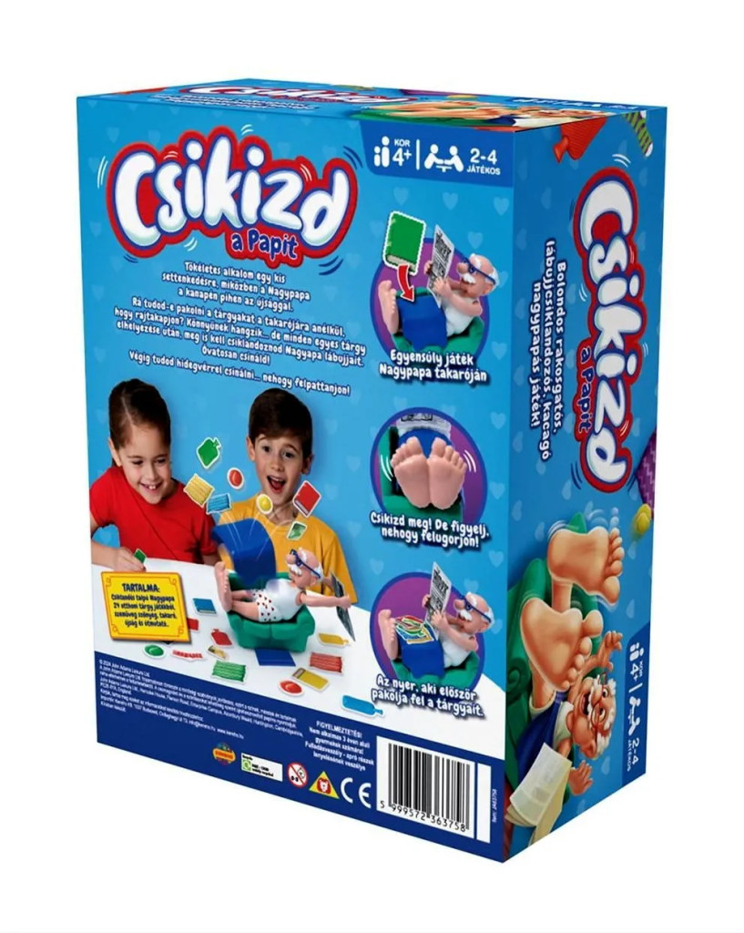 Ha igazán vidám, nevetéssel teli játékra vágytok, a Csikizd a Papit társasjáték tökéletes választás lesz az egész család számára. Ebben a bolondos ügyességi játékban a cél, hogy a Nagypapa lábujjai közé rejtett tárgyakat óvatosan felhelyezzétek, miközben ő békésen szundikál. Vigyázzatok, nehogy felébredjen, különben a játék újraindulhat, és kezdődhet elölről a móka. Ez a játék nemcsak kézügyességet és koncentrációt fejleszt, hanem rengeteg kacagással is megajándékoz mindenkit, aki kipróbálja.