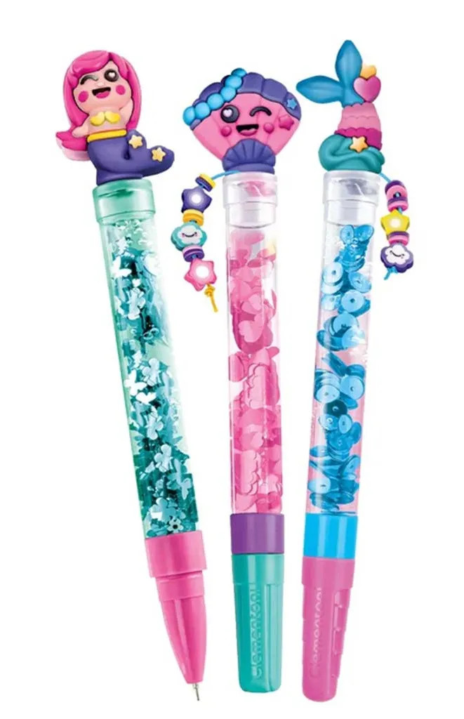 A készletben található színes dekor elemekkel, csillogó betétekkel és bájos figurákkal minden toll egyedi és személyes alkotássá válik. A tenger ihlette színek, a vidám mini hableány fejek és a mozgó, csillámló díszek igazán különlegessé teszik az elkészült darabokat. Nemcsak írni lesz élmény velük, hanem megmutatni az iskolában vagy ajándékba adni egy barátnak is.