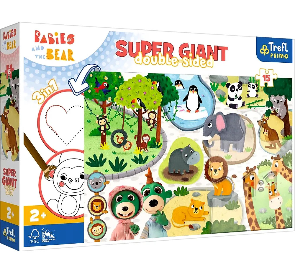 A puzzle 15 nagy méretű darabból áll, amelyek kifejezetten a kisgyermekek kezéhez lettek tervezve. A darabok könnyen megfoghatók és egyszerűen illeszthetők egymáshoz, így a kirakás gyors sikerélményt nyújt a gyerekek számára. A játék segíti a kézügyesség, a megfigyelőképesség és a koncentráció fejlődését, miközben a gyerekek játékosan fedezik fel a képen látható állatokat. A kirakott kép mérete 60 x 40 cm, így elkészülve egy igazán látványos és nagy méretű képet kapunk, amely még izgalmasabbá teszi a játékot. A Trefl Giant puzzle darabjai tartós, jó minőségű kartonból készülnek, ezért a kirakó többször is újra használható.