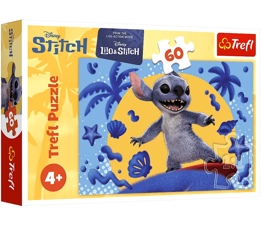A Trefl Stitch 60 darabos puzzle vidám és színes kirakós játék, amely garantáltan mosolyt csal a gyerekek arcára. A népszerű Disney karakter, Stitch egy játékos, tengerparti hangulatú jelenetben jelenik meg, amely tele van élénk színekkel és kedves részletekkel. A mókás grafika azonnal felkelti a gyerekek érdeklődését, és izgalmas kirakós élményt kínál számukra.