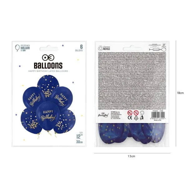 Ünnepeld a különleges napot stílusosan ezzel a 6 darabos, kék "Happy Birthday" feliratos lufi csomaggal! A csomag tartalmaz hat ragyogó kék lufit, amelyek mindegyikén boldogan csillog a "Happy Birthday" felirat, tökéletesen alkalmas bármely születésnapi partira, legyen az gyermek vagy felnőtt ünneplője.