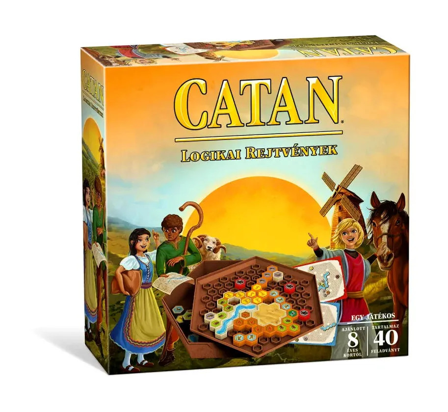A Catan Logikai rejtvények 5 fejezetből és 40 feladványból áll, 4 egyre nehezedő szinten játszható.