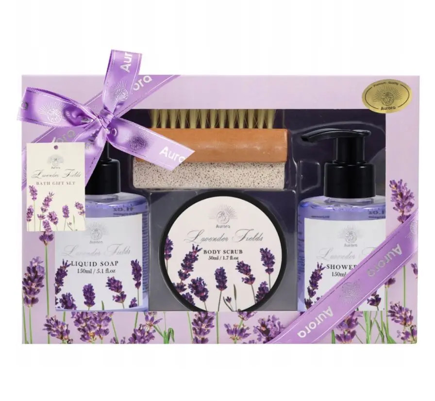 Varázsolja otthonába a provence-i levendulamezők nyugalmát és frissességét ezzel az exkluzív Aurora Lavender Fields ajándékcsomaggal. Ez a gondosan összeállított szett minden olyan alapvető kelléket tartalmaz, amely egy pihentető és megújító otthoni wellness élményhez szükséges. A levendula közismert nyugtató hatása segít ellazulni egy hosszú nap után, miközben bőre megkapja a neki járó prémium ápolást.
