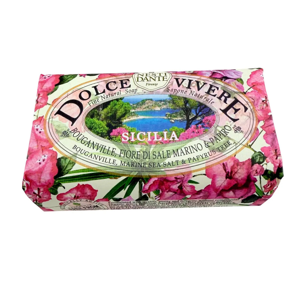 Egyetlen használat is elég ahhoz, hogy Szicília napsütötte hangulata beköltözzön a fürdőszobába, hiszen ez a Dolce Vivere Sicilia szappan valódi mediterrán élményt nyújt minden tisztálkodás során. Az illatvilágot a bougainvillea virágos frissessége, a tengeri só üde tisztasága és a papirusz természetes karaktere alkotja, amely egyszerre frissítő, mégis harmonikus és megnyugtató.