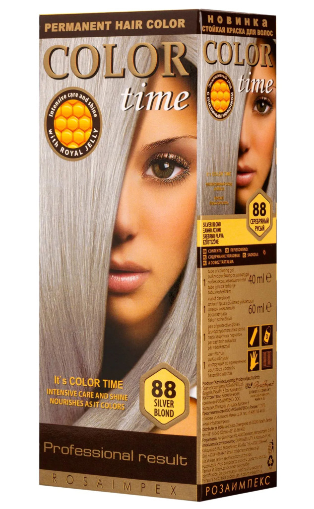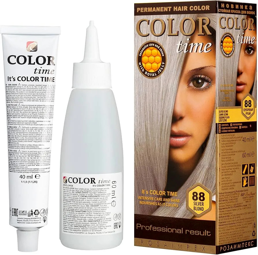 A Color Time 88-as ezüst szőke hajfesték modern és igazán látványos választás, ha hűvös tónusú, elegáns hajszínt szeretnél elérni. Ez a különleges ezüstös árnyalat finoman világosítja a hajat, miközben letisztult, hamvas hatást ad, így megjelenésed friss, stílusos és feltűnően egyedi lesz.