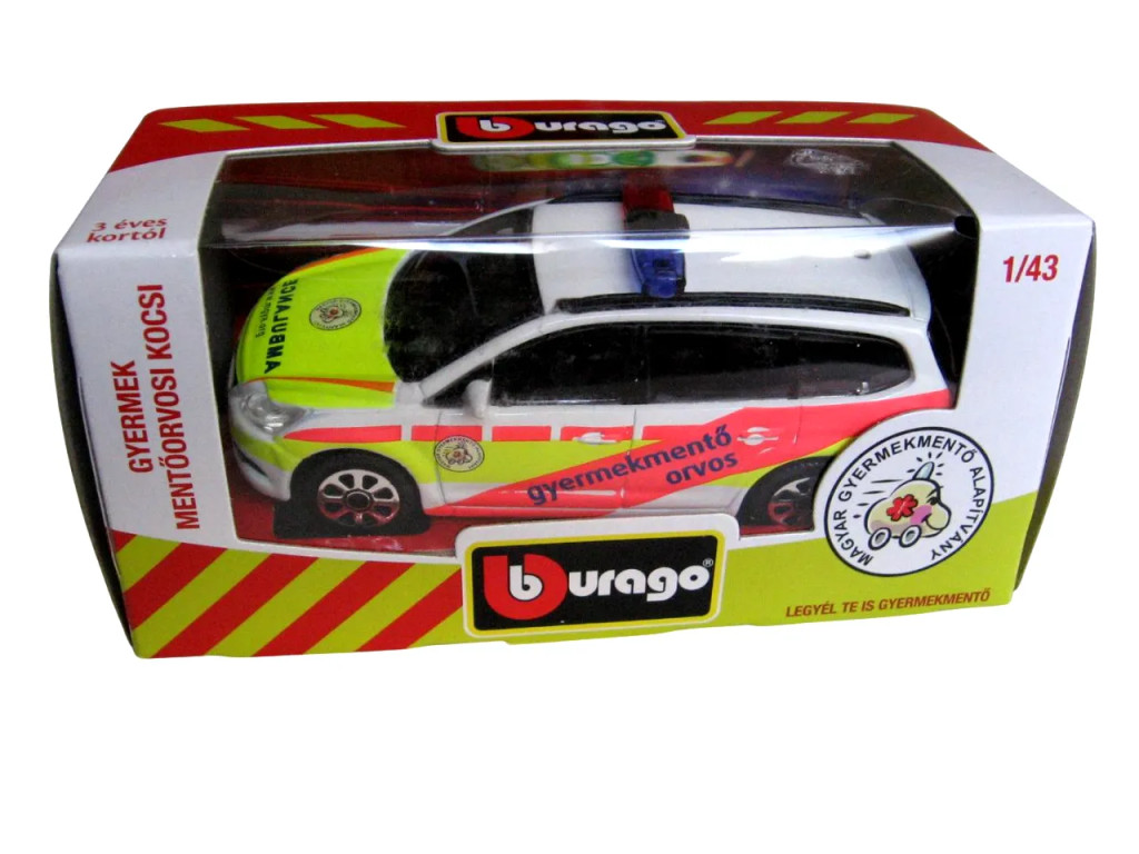 A Bburago 1/43 méretarányos gyermekmentő orvosi autómodell egy különleges darab, amely nemcsak a gyűjtőknek, hanem a gyerekeknek is igazi élményt nyújt. A 9 x 4 cm-es kisautó a Magyar Gyermekmentő Alapítvány járművét mintázza, így játék közben is segít megismertetni a kicsikkel a mentés és segítségnyújtás fontosságát.