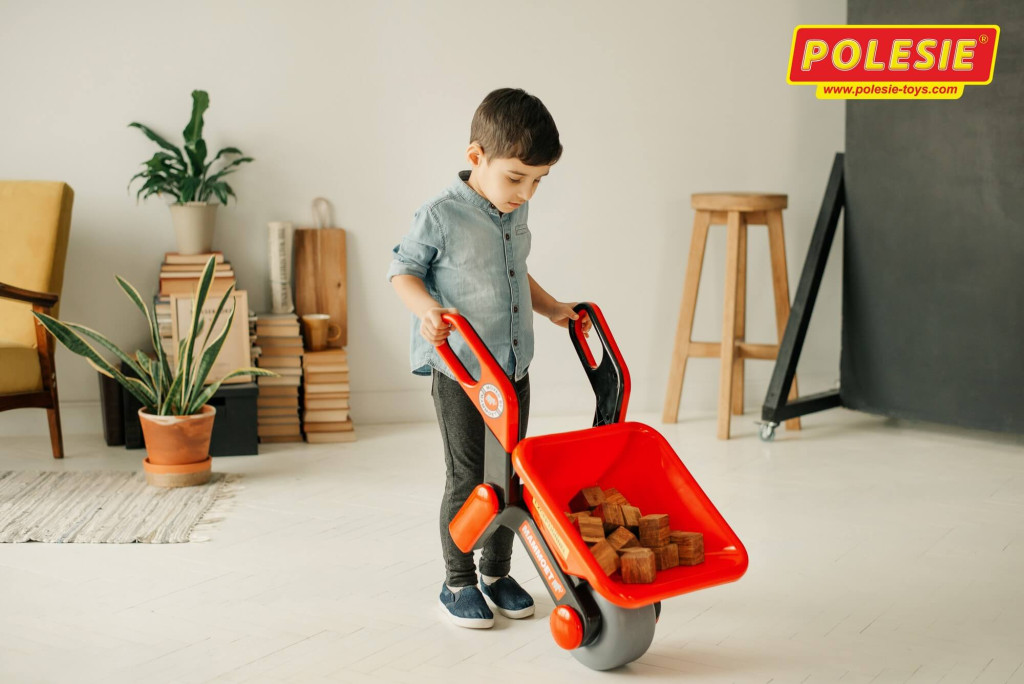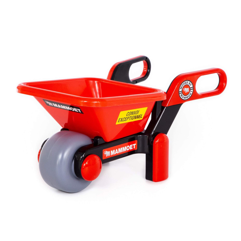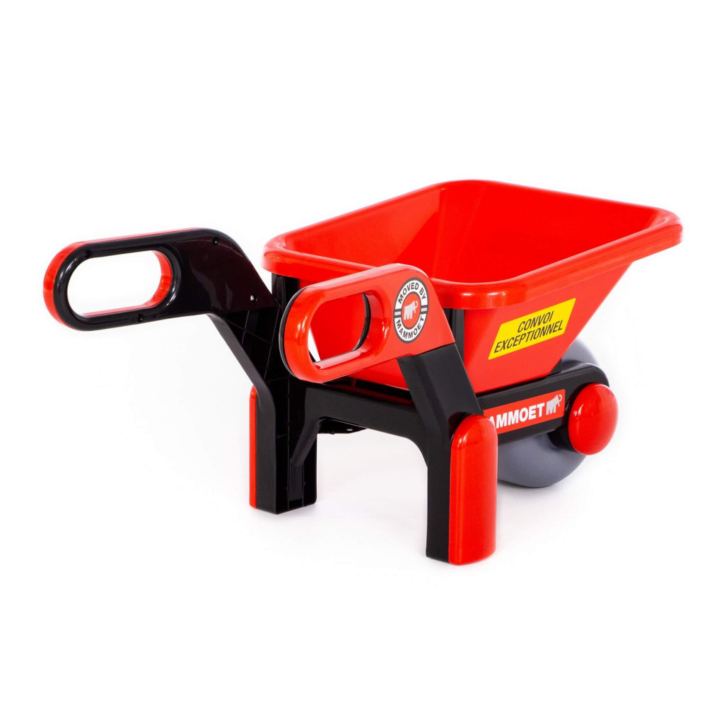 Minden kis építőmester álma most valóra válhat ezzel a vagány, piros-fekete Polesie talicskával! A Mammoet logóval ellátott dizájn nemcsak menő külsőt kölcsönöz neki, hanem azonnal komoly munkagép hangulatot is áraszt. A talicska kialakítása pont olyan, mint a „nagyoké”: egy nagy méretű első kerék, masszív fogantyúk, stabil kialakítás – mindez azért, hogy a homok, faépítőkocka vagy plüssállat szállítása ne okozzon gondot a legkisebbeknek sem.