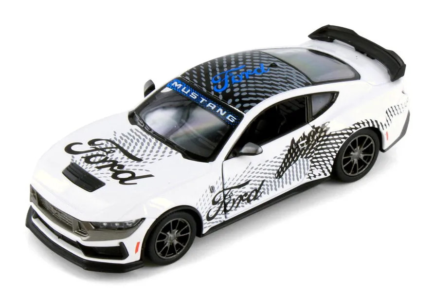 A fémautó figyelemre méltó jellemzője a Ford Mustang témájú felfestés, ami hűen tükrözi a valódi Dark Horse modell stílusát és dinamizmusát. A fényes, részletgazdag kivitel és a jellegzetes Mustang emblémák kiemelik a modell sportos karakterét, miközben a lenyűgöző színkombináció magára vonzza a tekinteteket.