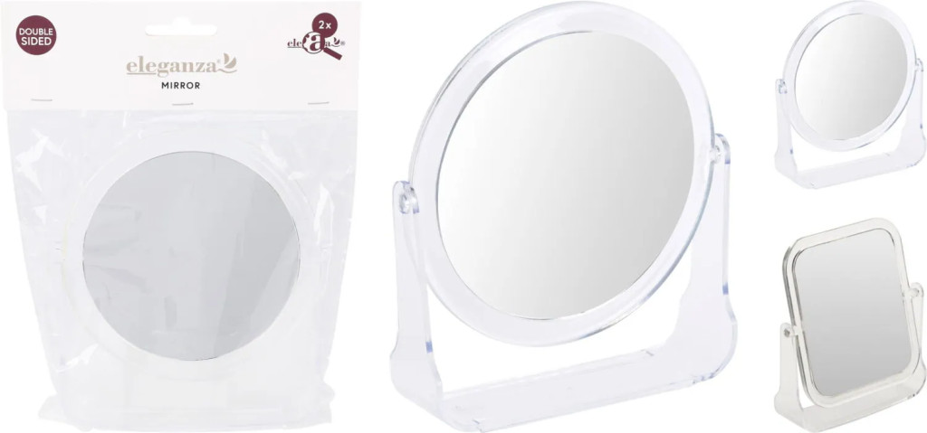 A kerek tükör elegáns és letisztult formájával igazi klasszikus darab, amely forgatható állvánnyal rendelkezik, így egyszerűen beállíthatod a számodra legkényelmesebb szöget. Különlegessége, hogy kétoldalas, egyik oldala normál, másik oldala pedig nagyítós felületű, amely segít a sminkelésben vagy a precízebb ápolási feladatoknál.