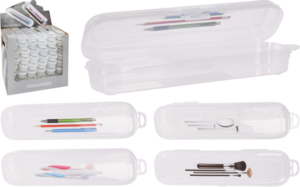 Ez a 23 x 6 x 5 cm-es átlátszó műanyag eszköztartó tökéletes megoldás a mindennapi rend fenntartásához! Átlátszó kialakításának köszönhetően azonnal átlátható, mi található benne, így nem kell keresgélni, legyen szó tollakról, ceruzákról, kézműves eszközökről vagy más apró tárgyakról.