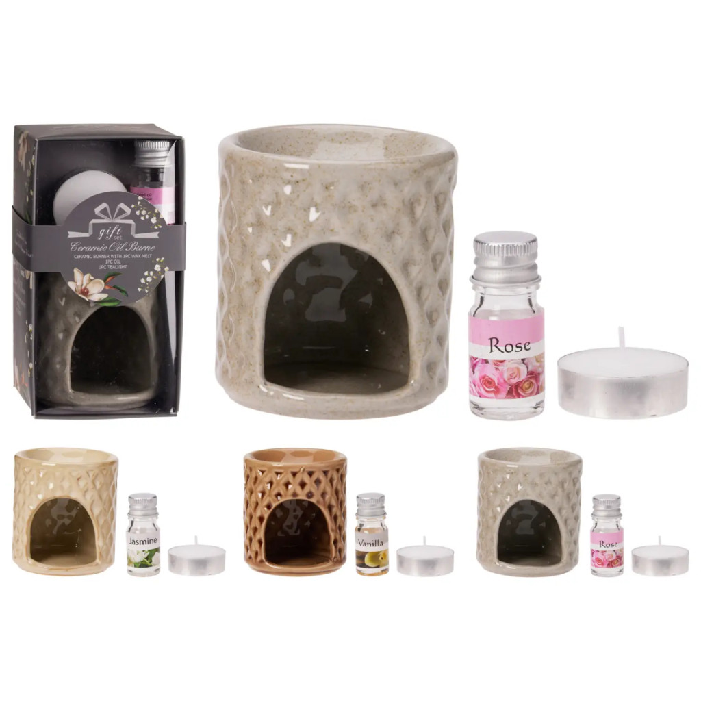 Kerámia illóolaj párologtató szett – aromalámpa ajándék csomag mécsessel és illóolajjal