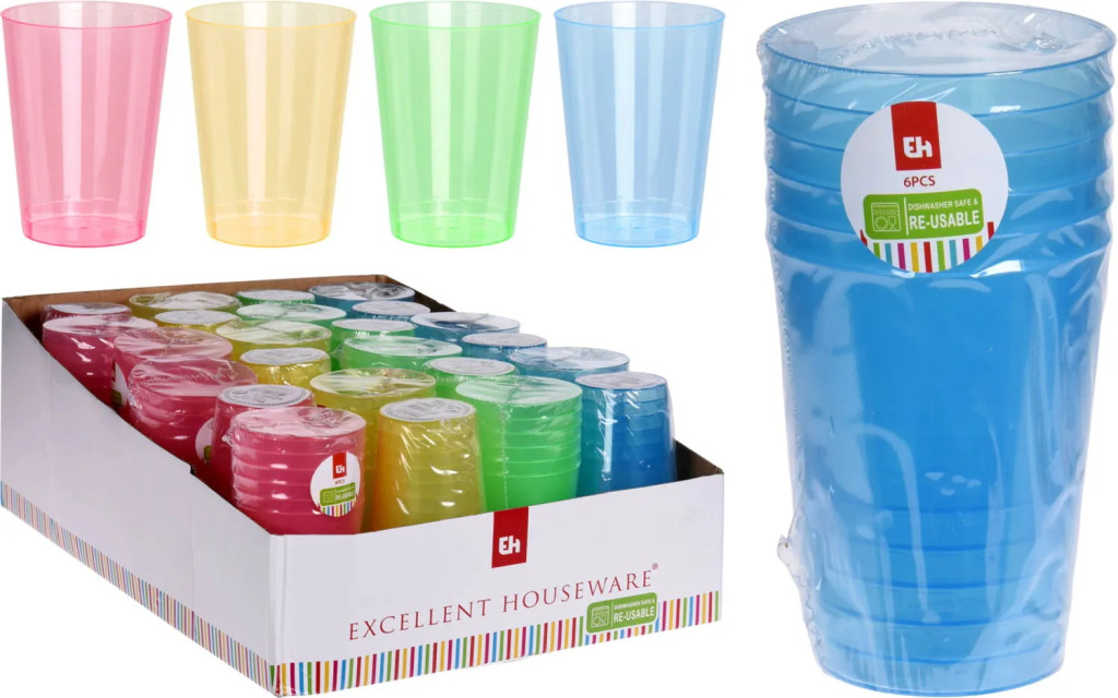 Ez a 6 darabos műanyag pohár szett színes és vidám választás mindennapi használatra! A poharak 280 ml-es űrtartalmúak, így tökéletesek egy frissítő italhoz, gyümölcsléhez vagy akár egy hűsítő limonádéhoz.