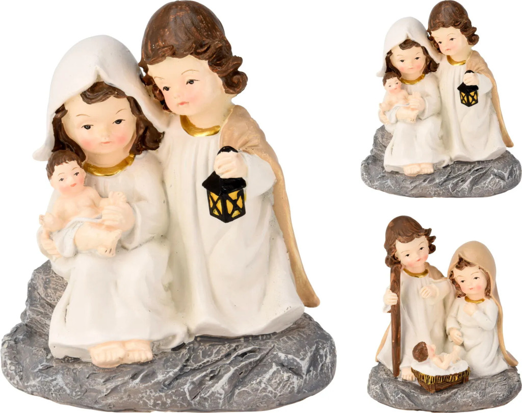 Hangold rá otthonod a karácsony legszentebb pillanatára ezzel a gyönyörű, 12 x 16 cm-es Betlehemi figurával, amely meghitt és békés hangulatot varázsol bármely helyiségbe. A részletgazdag kidolgozású szobrocskákon Mária, József és a kis Jézus látható, akik szeretetteljes jelenlétükkel az ünnep igazi üzenetét, a család, a szeretet és a remény fontosságát idézik meg.