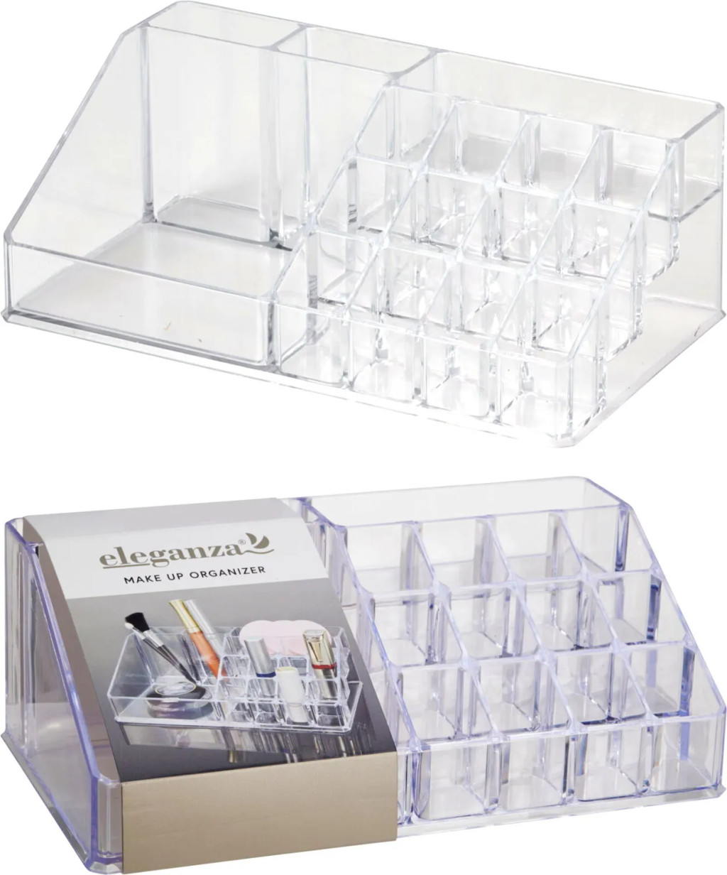 A tartó strapabíró, könnyen tisztítható műanyagból készült, így hosszú ideig megőrzi átlátszóságát és formáját. Ideális választás fürdőszobába, fésülködőasztalra vagy akár irodai asztalra is, ha szeretnéd, hogy a környezeted rendezett és stílusos maradjon. Ez a make-up tartó a praktikum és az elegancia tökéletes egyensúlyát kínálja!