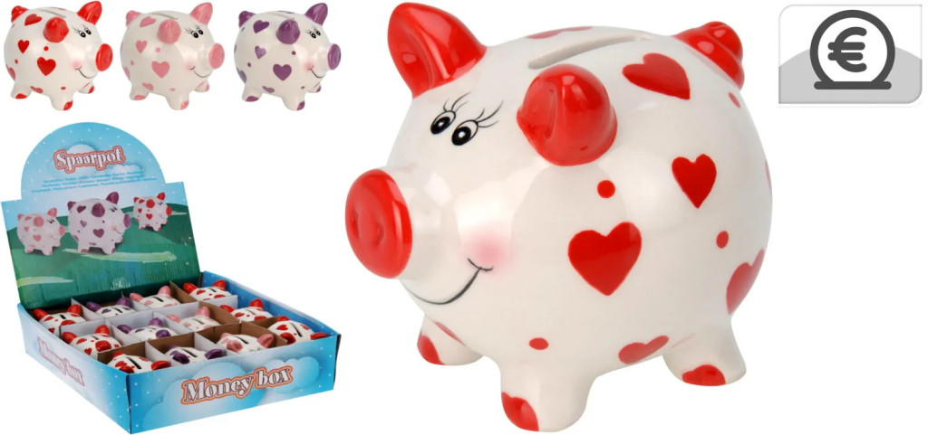 Ez az aranyos, szív mintás kerámia malacpersely tökéletes választás mindenkinek, aki szeretne vidám hangulatban spórolni. A 9 x 8 cm-es méretének köszönhetően praktikus, mégis elég tágas ahhoz, hogy összegyűjtsd benne az aprópénzt vagy akár kisebb címleteket.