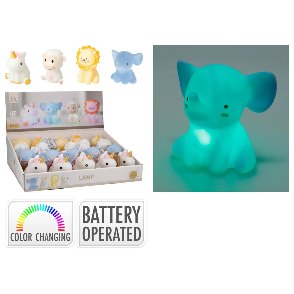 LED éjjeli lámpa gyerekeknek 10 cm – színváltós, elemes állat figura lámpa